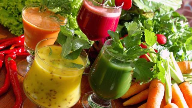 *Outra forma de desjejum desintoxicante é o suco verde, composto por: suco de 01 limão, 01 maçã fugi ou gala, 01 lasca de gengibre, 01 folha de couve ou de brócolis ou 01 punhado de folhas de espinafre (todas sem o talo), 01 laranja e 01 colh. (sopa) de mel puro. Pode ser acrescentada 01 colher de semente de linhaça, marrom ou dourada. Bata tudo no liquidificador, acrescente cubinhos de gelo para que fique numa temperatura fresca, não gelado, e desfrute dessa maravilhosa vitamina!