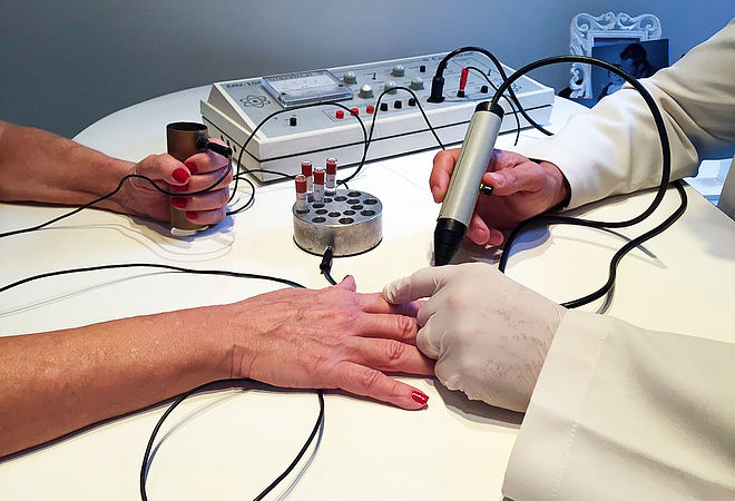 - NUTROGRAMA E MINERALOGRAMA POR BIORRESSONÂNCIA (VEGATEST): A Biorressonância possibilita o diagnóstico das possíveis reações no corpo causadas por alimentos aos quais haja intolerância ou alergia. O exame é indolor e realizado em consultório, com duração aproximada de 60 minutos. É feito através de pontos específicos nos dedos da mão. A pessoa preenche um questionário sobre seu estado geral e deve estar na condição normal de saúde, ou seja, sem febre ou enxaqueca. Após uma semana, o paciente recebe o laudo com os alimentos aos quais ele é reativo, possíveis intoxicações, doenças presentes ou futuras, deficiência de vitaminas e minerais.Nesse caso, você vai precisar da avaliação de um profissional para prescrever o exame, geralmente realizado em clínicas por nutricionistas, nutrólogos, médicos ortomoleculares, podendo ser solicitado também por homeopatas, acupunturistas, biomédicos, entre outros.
