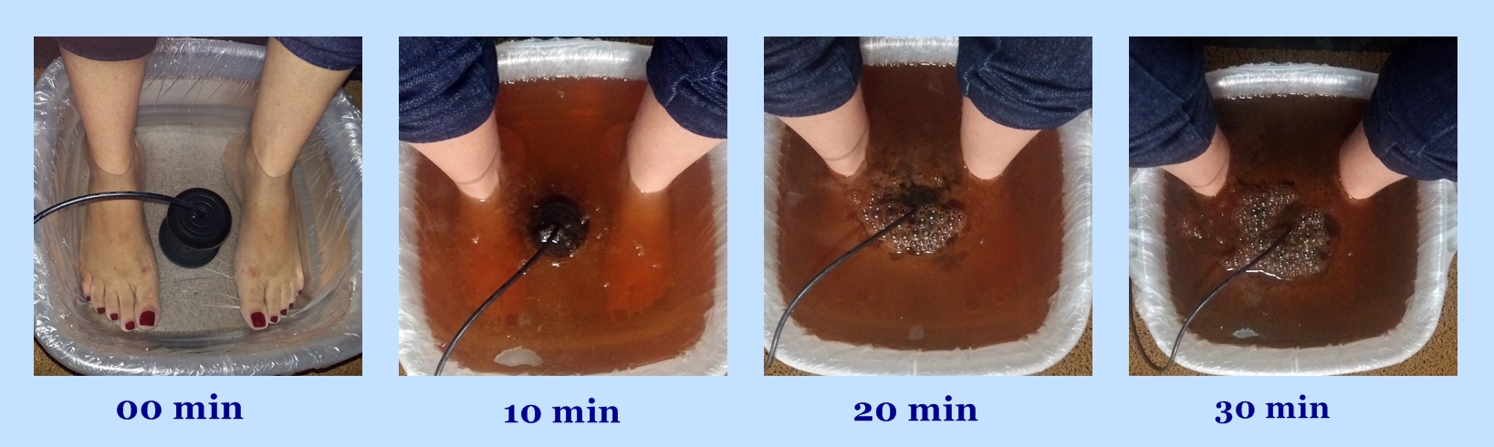 - DESINTOXICAÇÃO IÔNICA pelos pés (Bioeletrônica): É realizada por um emissor de frequências e de hidroterapia que combina as propriedades terapêuticas da água com a força da bio-eletrônica, restabelecendo e ampliando a capacidade do corpo de se autocurar. Além de possibilitar a estimulação e normalização do organismo através da desintoxicação, é um método energizante e não doloroso. Existem muitos vídeos e sites na internet, inclusive com profissionais de outros países, demonstrando a eficácia do tratamento através da experiência com pacientes que possuem problemas variados de saúde. Pelos pés possuírem pelo menos 2000 poros, esta é uma ótima opção para o tratamento. Os sinais bioenergéticos efetuam harmonização e desintoxicação, carregando íons e moléculas tóxicas ionizáveis e estimulam glândulas linfáticas para o processo de desintoxicação. Assim, quando as células estão com suas funções corretas, elas permitem que nutrientes importantes sejam absorvidos e que sejam eliminadas toxinas não desejáveis.