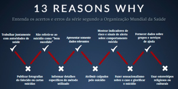 Diferente de ser apenas uma série de entretenimento, logo no início já é anunciada uma mensagem de ajuda, o que do meu ponto de vista foi um grande diferencial para os resultados que foram alcançados até então. Segundo o Centro de Valorização da Vida – site que realiza apoio emocional e prevenção do suicídio, atendendo voluntária e gratuitamente todas as pessoas que querem e precisam conversar, sob total sigilo por: telefone, email, chat e Skype 24 horas, todos os dias – desde a estréia da série, a quantidade de emails com pedidos de ajuda aumentou 445%, havendo uma alta de 170% na média diária de visitantes no site. A maioria dos pedidos de ajuda foram de jovens que se identificavam com a dor da personagem principal.