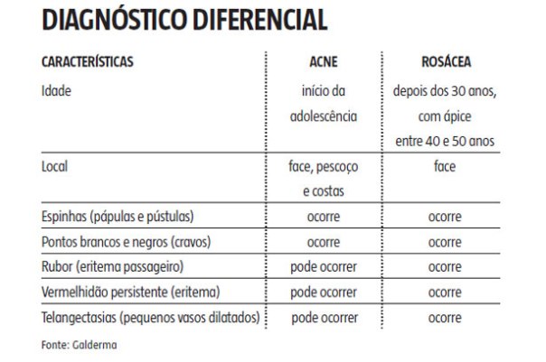 A rosácea é uma condição inflamatória, cíclica e crônica da pele. Manifesta-se através de rubor e vermelhidão no rosto, podendo gerar o aparecimento de espinhas – com maior frequência no centro do rosto, bochechas, nariz, testa e queixo. Por vezes, pode aparecer no tronco, nos braços e nas pernas. Nos casos mais avançados, pode ocorrer acne em forma de grãos e espinhas que, às vezes, chegam a ser bastante dolorosos.
