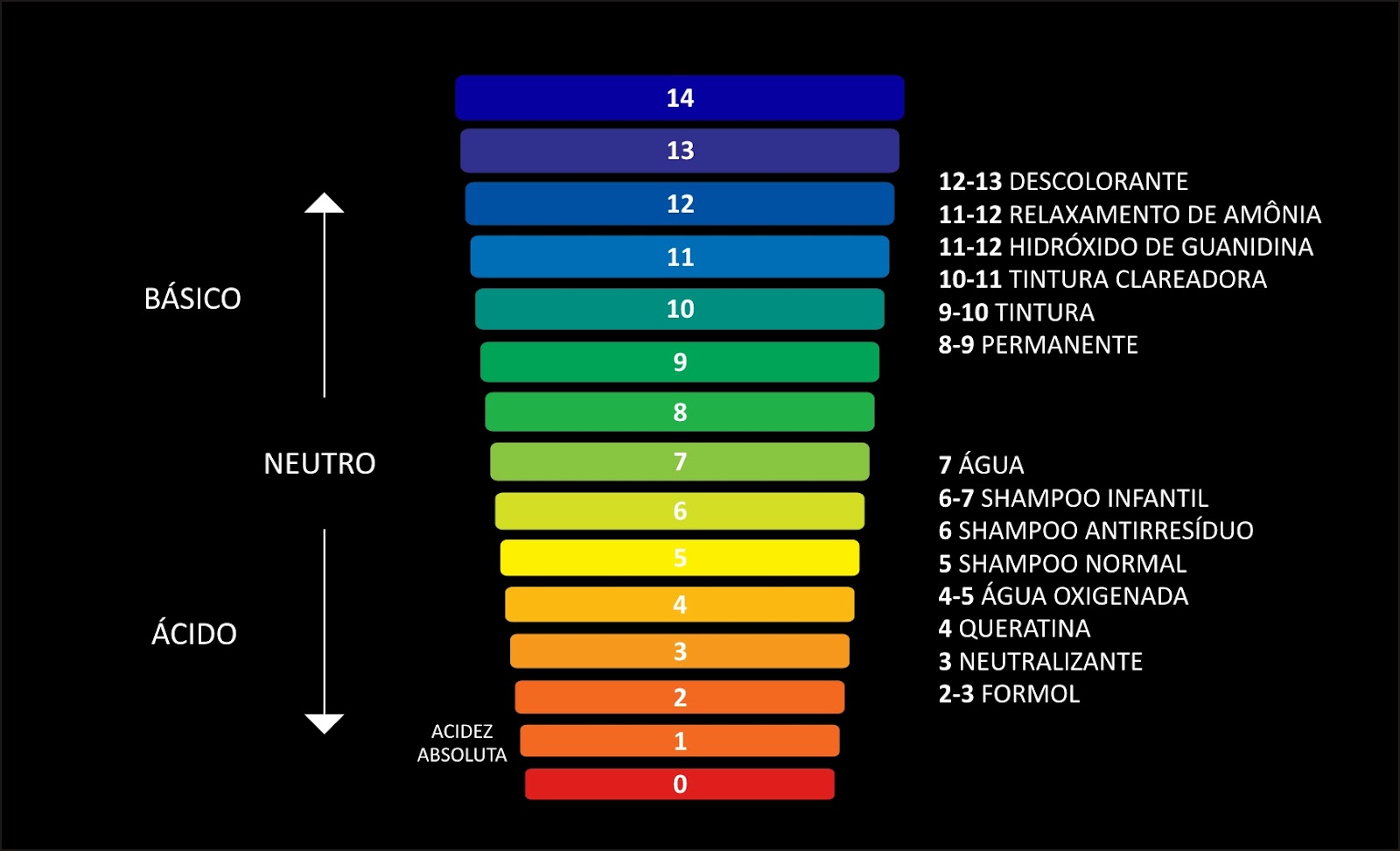O Ph normal do cabelo humano fica em torno de 4,5 a 5,5, ou seja, ligeiramente ácido. Assim se forma o manto ácido, que tem como função impedir a proliferação de fungos e bactérias no couro cabeludo, evitando irritações. Fios com pH neste grau são saudáveis e têm as cutículas fechadas (aderentes e lisas). O pH, ou Potencial de Hidrogênio, é a escala que mede o grau de acidez ou alcalinidade de uma substância, podendo variar de 0 a 14.