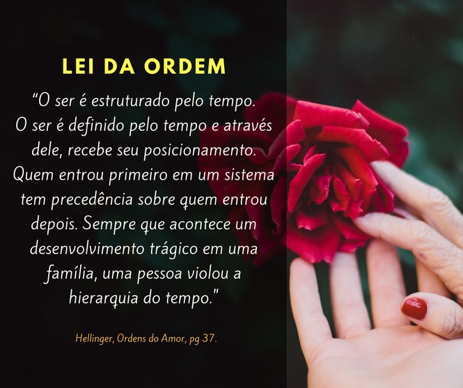 Fonte complementar (Livros de Bert Hellinger): A Fonte não precisa perguntar pelo caminho / Ordens da Ajuda / O reconhecimento das ordens do amor/ Ordens do Amor/ A Simetria Oculta do Amor/ Constelações Familiares.