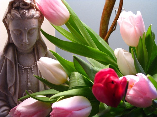 Todos que sintonizam com sua consciência e trabalham através de sua compaixão – já muito vista por mim como flores de lótus energéticas em trabalhos que realizei, cujas frequências de cores eram diferentes dependendo do tipo de ferida emocional que a pessoa necessitava trabalhar – sabem o quanto sua energia é doce, cálida e sutil, mas também o quanto é profunda. Mesmo tendo alcançado “a iluminação”, a consciência de si, ela optou por permanecer sintonizada ao mundo humano em auxílio.