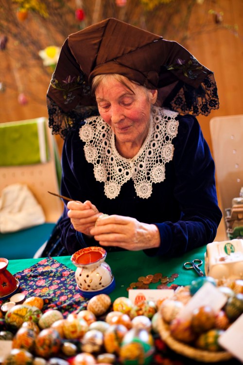 Artista Sorábia (Povo Eslavo) pintando ovos