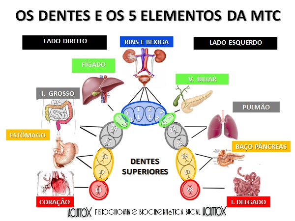 Mas, qual a relação de uma vida de qualidade com os dentes? Muitas pessoas desconhecem a relação dos órgãos e das emoções com os dentes, afinal nosso corpo é um sistema perfeito e totalmente interconectado. Por essa razão, o cuidado com a saúde em geral é importante, o eterno equilíbrio entre corpo-mente-emocional-espírito. O esquema abaixo, de acordo com a Medicina Tradicional Chinesa, mostra claramente essa relação. [Você pode aprofundar esse estudo lendo sobre A Metafísica dos Dentes.]